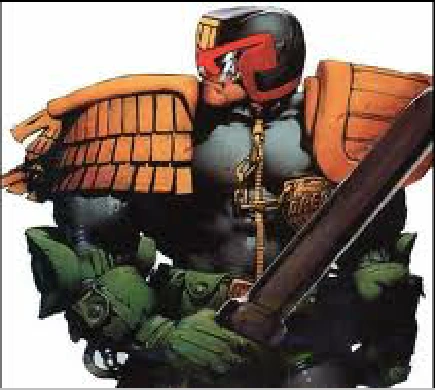 The Day stick is a long one- or two-handed cudgel (blunt weapon like a baseball bat or a club). It is used by Judges for riot control and less-than-lethal attacks on aggressive perps. It has a titanium core, as demonstrated when one perp attempted to slice though it with a chainsaw to no avail.